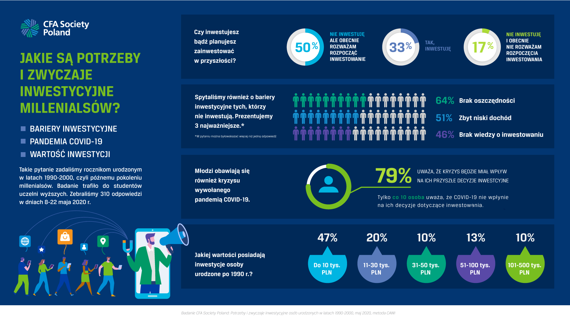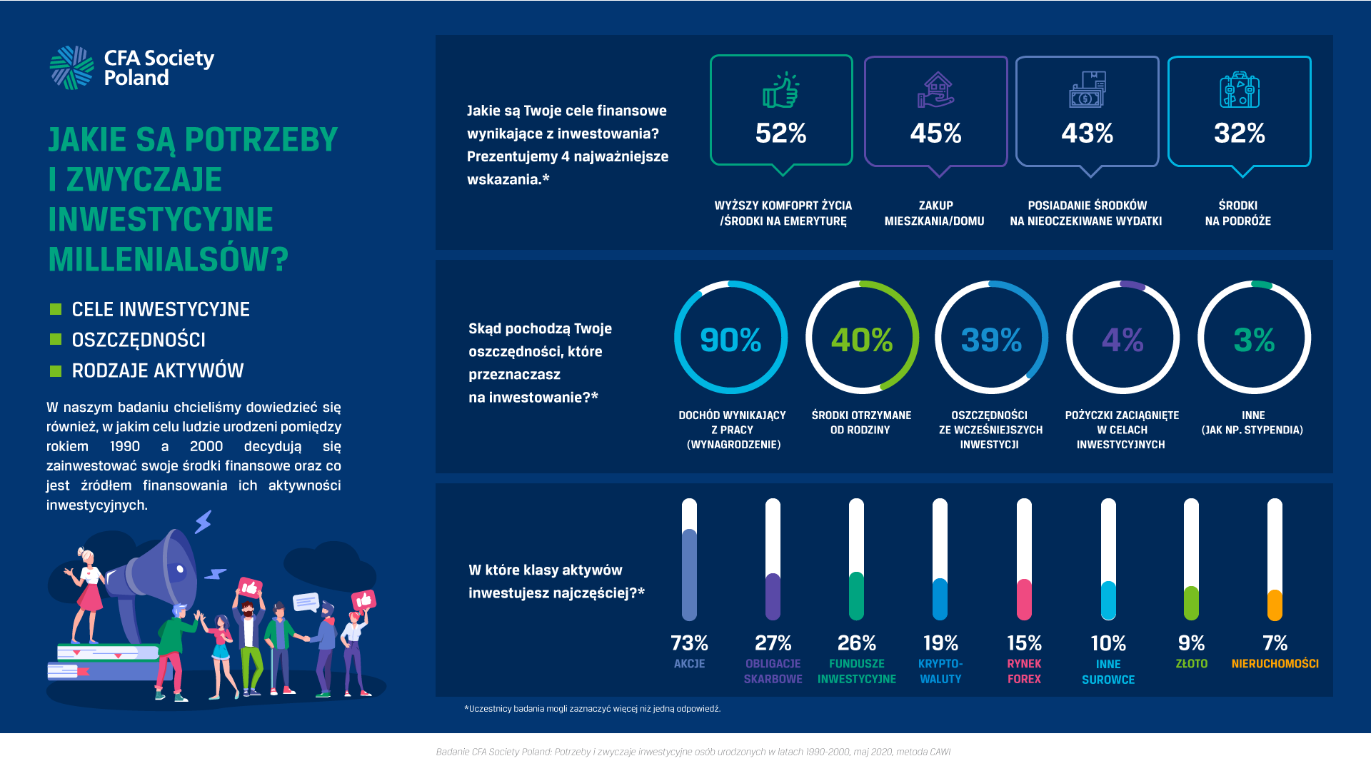 Badanie CFA Society Poland, Potrzeby i zwyczaje inwestycyjne osób urodzonych pomiędzy 1990 a 2000 r., w maju 2020, metodą CAWI. Partner badania: Fundacja im. Lesława Lesława A. Pagi.